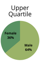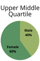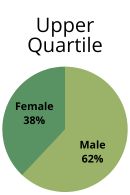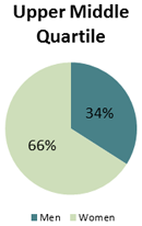 Pay Quartiles show the balance between male and female staff at different levels of pay. Employees are split into four equally sized groups based on their hourly rate of pay and the following charts show the percentage of men and women in each group. For example, 39% of employees in the highest paid group (the Upper Quartile) are women and 61% are men.