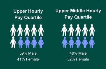 - Both our mean and median hourly pay gaps have continued to reduce compared with 2023, with the mean pay gap reducing for the fourth consecutive year. Pay gaps remain as there is an over-representation of women in lower pay quarters. However, women have moved from the lower pay quarter into the higher quarters and this can be seen in our Gender Pay Gap reporting analysis.
