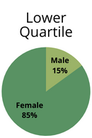 Pay Quartiles show the balance between male and female employees at different levels of pay. Employees are split into four equally sized groups based on their hourly rate of pay and the following charts show the percentage of men and women in each group.
